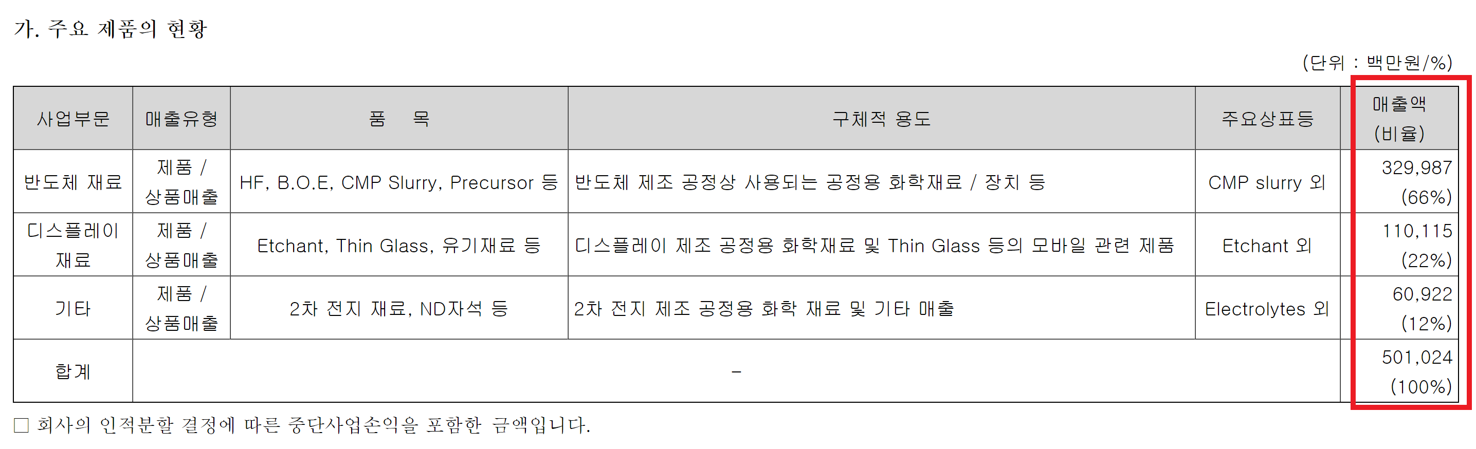 시간 및 능력의 한계로 매출 비중이 높은 것을 위주로 분석한다.
