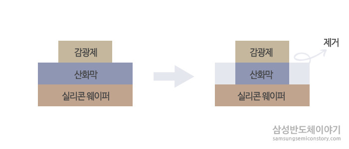 반도체 전공정 중 일부로, 웨이퍼에서 필요한 회로 패턴 제외 나머지를 제거하는 과정이다.