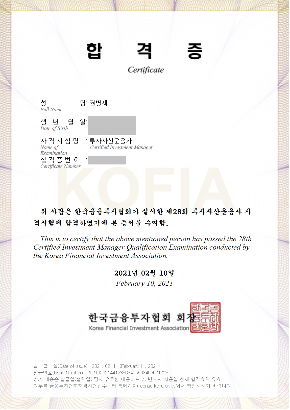 (정확한 정보는 아니나, 펀드와 랩어카운트 운용 시에 자격증 보유가 필수라고 들었습니다.)